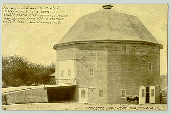 Concrete Round Barn Constructed by Menno Yoder (YR2337a5) and his sons-it still stands just west of downtown Shipshewana, Indiana
